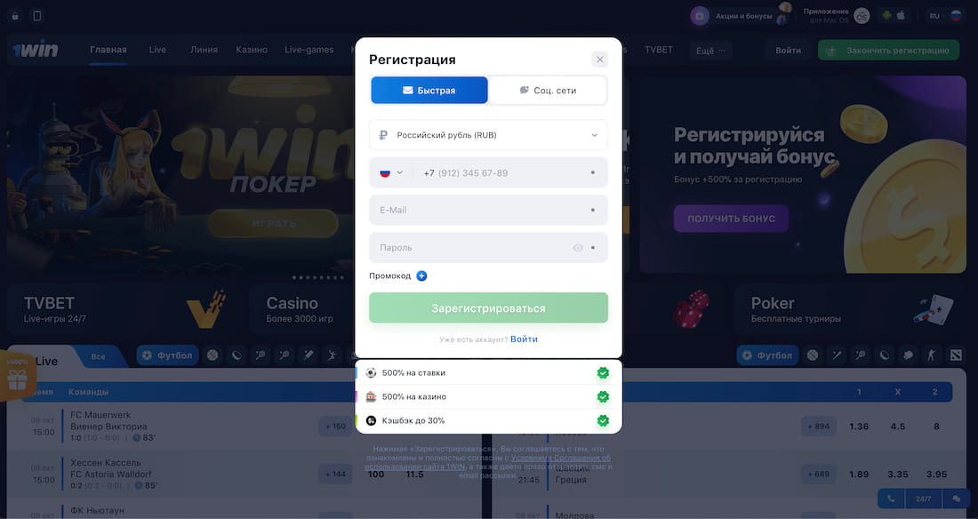 Чтобы стать клиентом букмекера 1Win, гостям должно исполниться 18 лет. Создать учетную запись можно как на сайте, так и в приложении. Регистрация дает доступ к пари, турнирам, играм на деньги и управлению счетом. Чтобы зарегистрироваться в букмекерской конторе, игрокам нужно следовать простой инструкции: